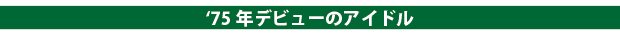 '74年8月25日に「ボーイフレンド」でデビューするが、話題にならなかった。'76年のバスポンのCMで「まんまる顔の女の子は……」と歌う「恋人試験」で人気が出た。妊娠騒動でアイドルからの転身を余儀なくされた。 |