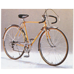 ブリヂストンサイクル工業(現・ブリヂストンサイクル)が発売したシンプルなデザインの本格派スポーツ自転車。ハンドルもプロ並みのドロップハンドルで、これがカッコいいと、人気の要因になった。全体はあくまでもベーシックなデザインだが、好みのパーツにつけ替えることもできた。3万8500円。 |