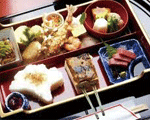 このなかで印象に残っているのは「田ごと」の「光悦水指弁当」である。「田ごと」は四条通の新京極と河原町の間の繁華街にあるので、見逃しやすい店である。だが、一軒ほどの間尺から店に入ると、石畳の路地になっていて、玄関までの間につくばいや池がしつらえてあり、喧噪の空間から静寂な空間へ入るという心構えになる。